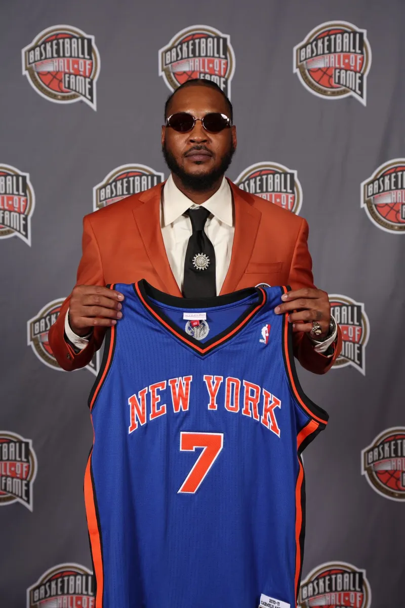 虎撲09月06日訊 今日,尼克斯社媒曬出卡梅羅-安東尼在籃球名人堂活動(dòng)現(xiàn)場(chǎng)手捧效力尼克斯時(shí)期7號(hào)球衣的尼克照片。