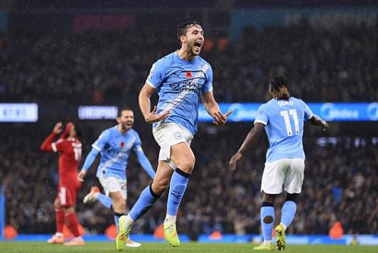 虎撲11月09日訊 本輪英超焦點戰(zhàn),曼城半場2-0領(lǐng)先利物浦,球進球尼科破門擴大比分。板尼