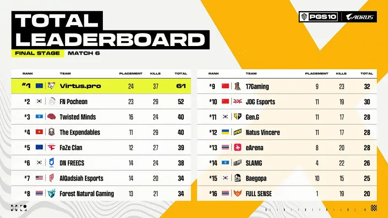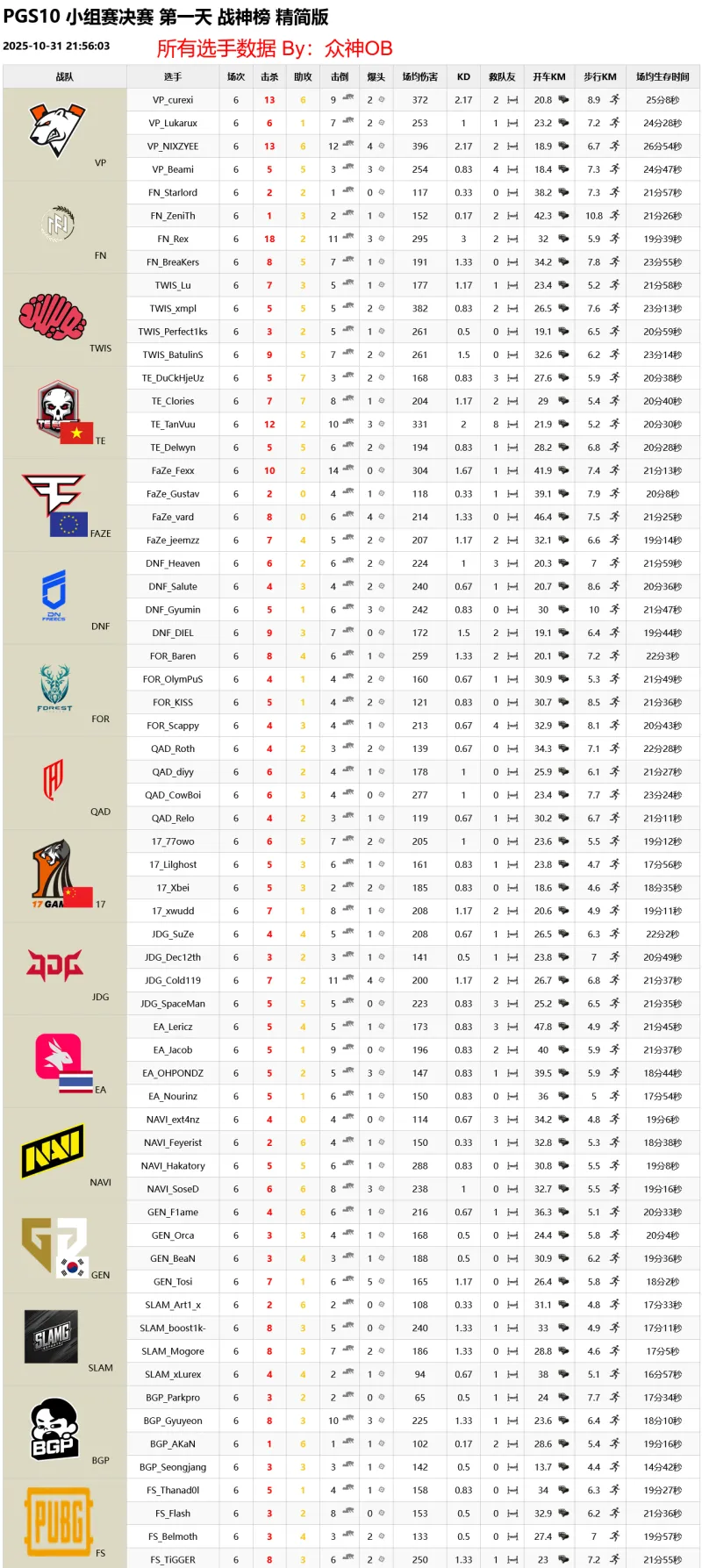 PGS10決賽 第一天 積分榜&戰(zhàn)神榜