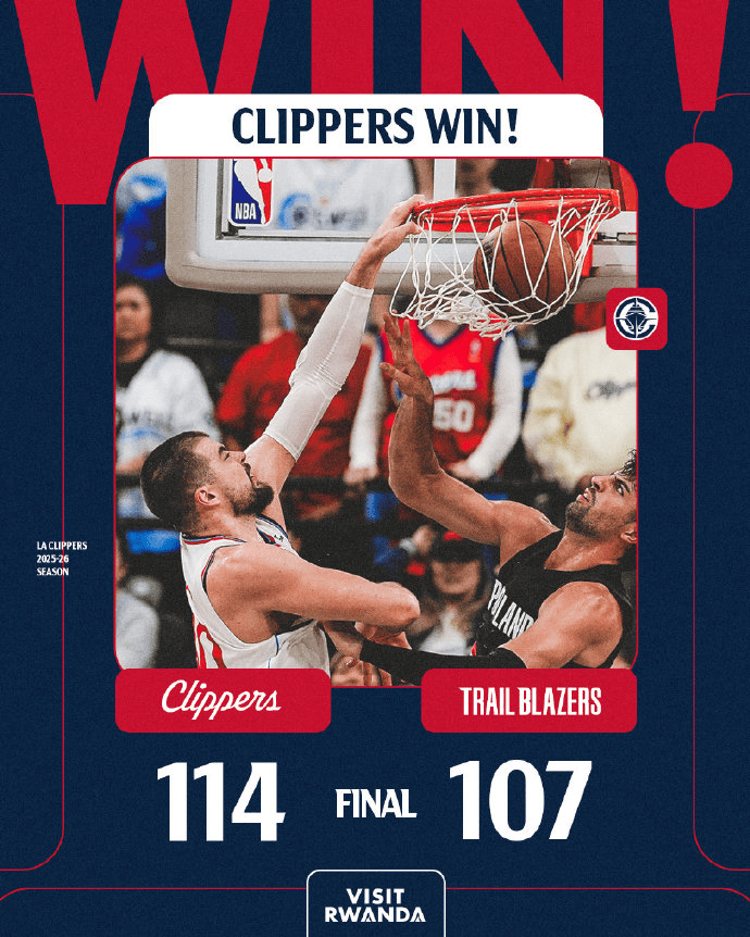 虎撲10月27日訊 今日NBA常規(guī)賽,快船114-107戰(zhàn)勝開拓者。陣開主場(chǎng)