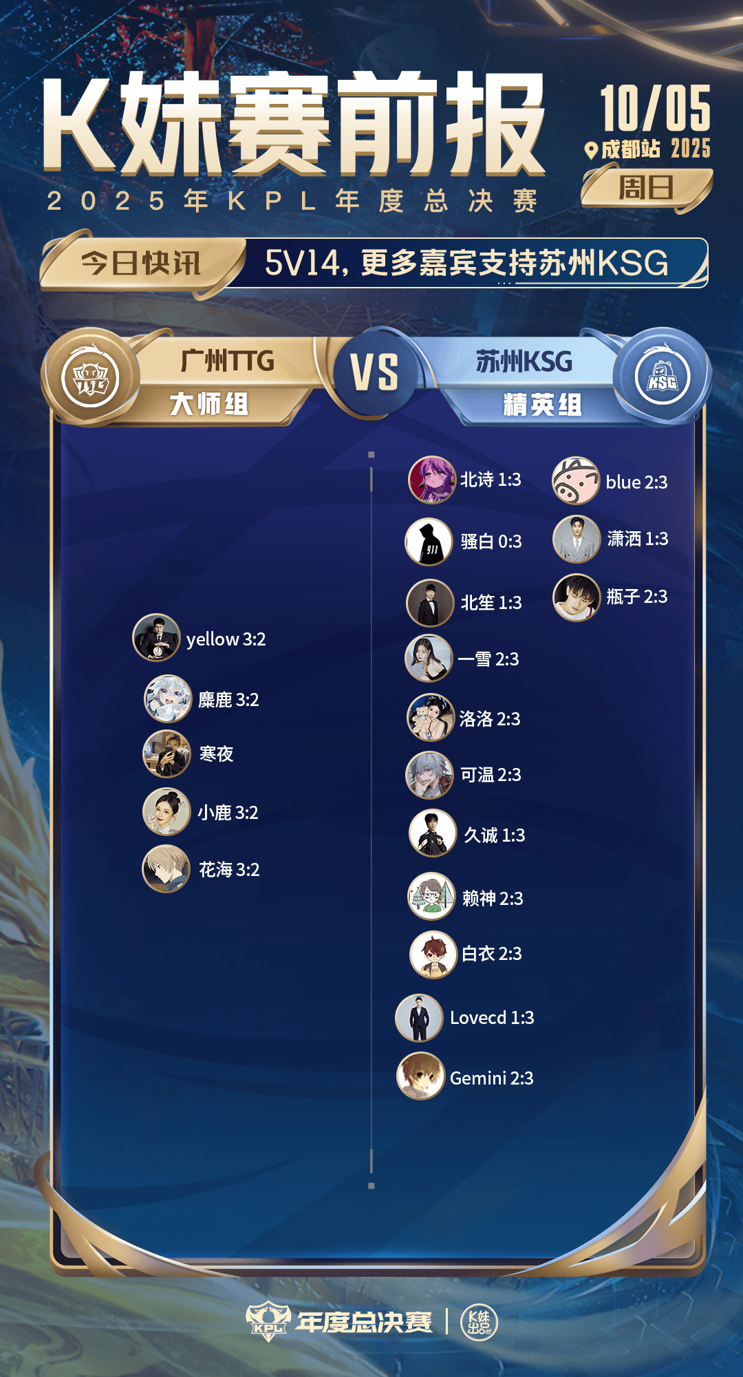 TTG對戰(zhàn)KSG:5v14,更多嘉賓支持蘇州KSG;