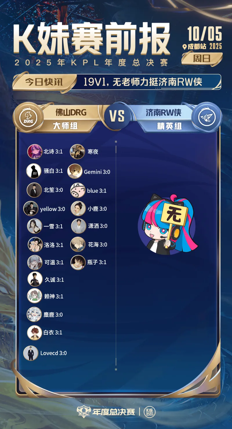 DRG對戰(zhàn)RW:19v1,無老師力挺濟(jì)南RW俠;