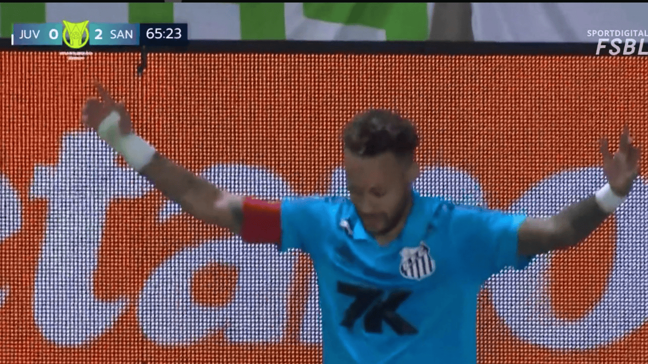 虎撲12月04日訊 巴甲第37輪尤文圖德主場(chǎng)迎戰(zhàn)桑托斯的保級(jí)大戰(zhàn)正在進(jìn)行中,目前桑托斯已經(jīng)2-0領(lǐng)先,開(kāi)度兩粒進(jìn)球都由內(nèi)馬爾打進(jìn)。板保