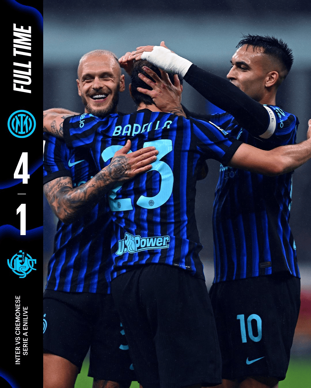 虎撲10月05日訊 意甲第6輪,國(guó)際米蘭主場(chǎng)4-1大勝克雷莫納。際米