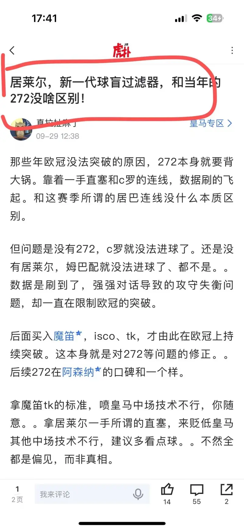 拉扯哥應(yīng)該不是一個人在戰(zhàn)斗,還有一個點贊大隊默默支持他,個人感覺他并不是黑或者粉或者主觀或者樂觀,他只是迎合區(qū)里最多數(shù)的聲音進行煽動。據(jù)我觀察,他也想在曼聯(lián)區(qū),切爾西區(qū),甚至懂帝帶帶節(jié)奏但是都沒成功,只有在愛好廣泛多事之秋的皇馬區(qū)整了整動靜,考慮到只是一個注冊100多天的新號,其目的性就不深入思考了。