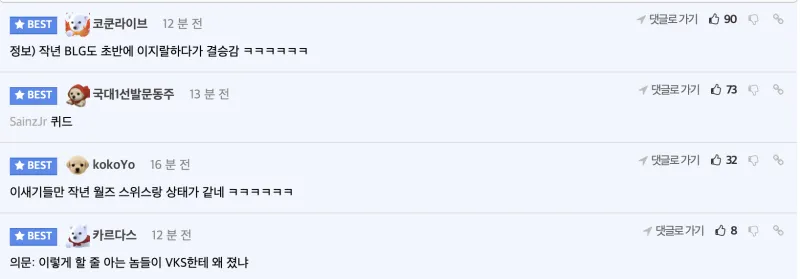 虎撲10月15日訊 2025英雄聯(lián)盟全球總決賽瑞士輪第一個比賽日,BLG不敵北美100T,賽后韓國論壇網(wǎng)友對此展開熱議,部分熱門內(nèi)容翻譯如下: