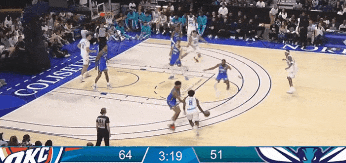 虎撲10月06日訊 NBA季前賽,雷霆和黃蜂的克斯開防比賽正在進(jìn)行中。