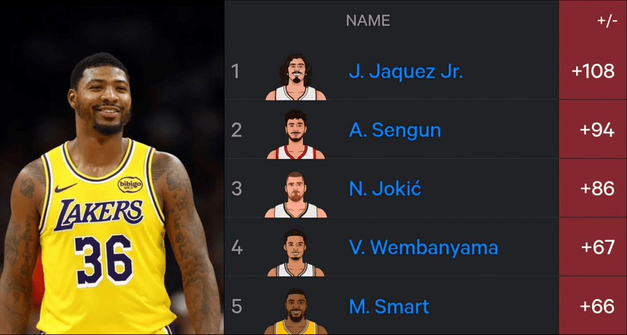 虎撲11月04日訊 今日,美媒BronMuse統(tǒng)計了賽季至今總正負(fù)值榜,斯第申京具體如下: