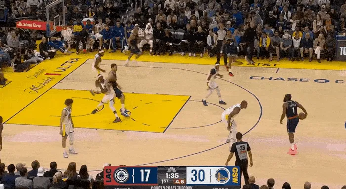 NBA常規(guī)賽,勇士對(duì)陣快船的哈登回合比賽正在進(jìn)行中。