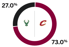 [流言板]ESPN預(yù)測(cè)明日比賽:雄鹿勝率僅為27%,而騎士勝率高達(dá)73%