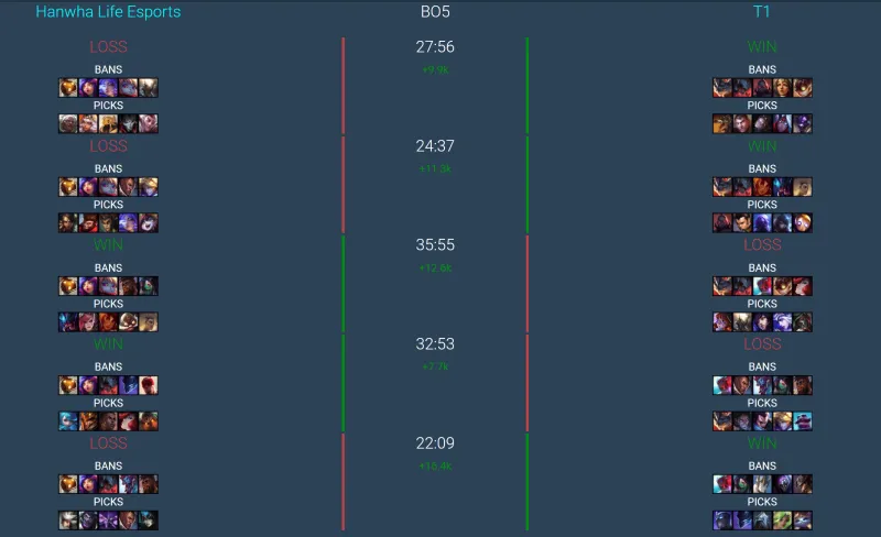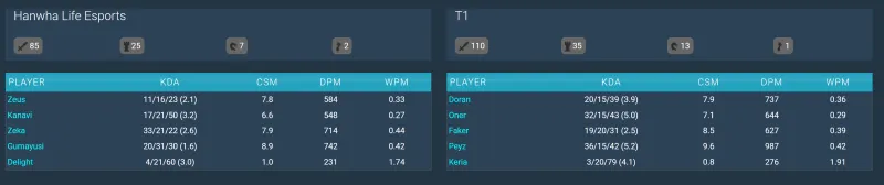 2025 Kespa杯決賽T1 3-2 HLE賽后數(shù)據(jù)