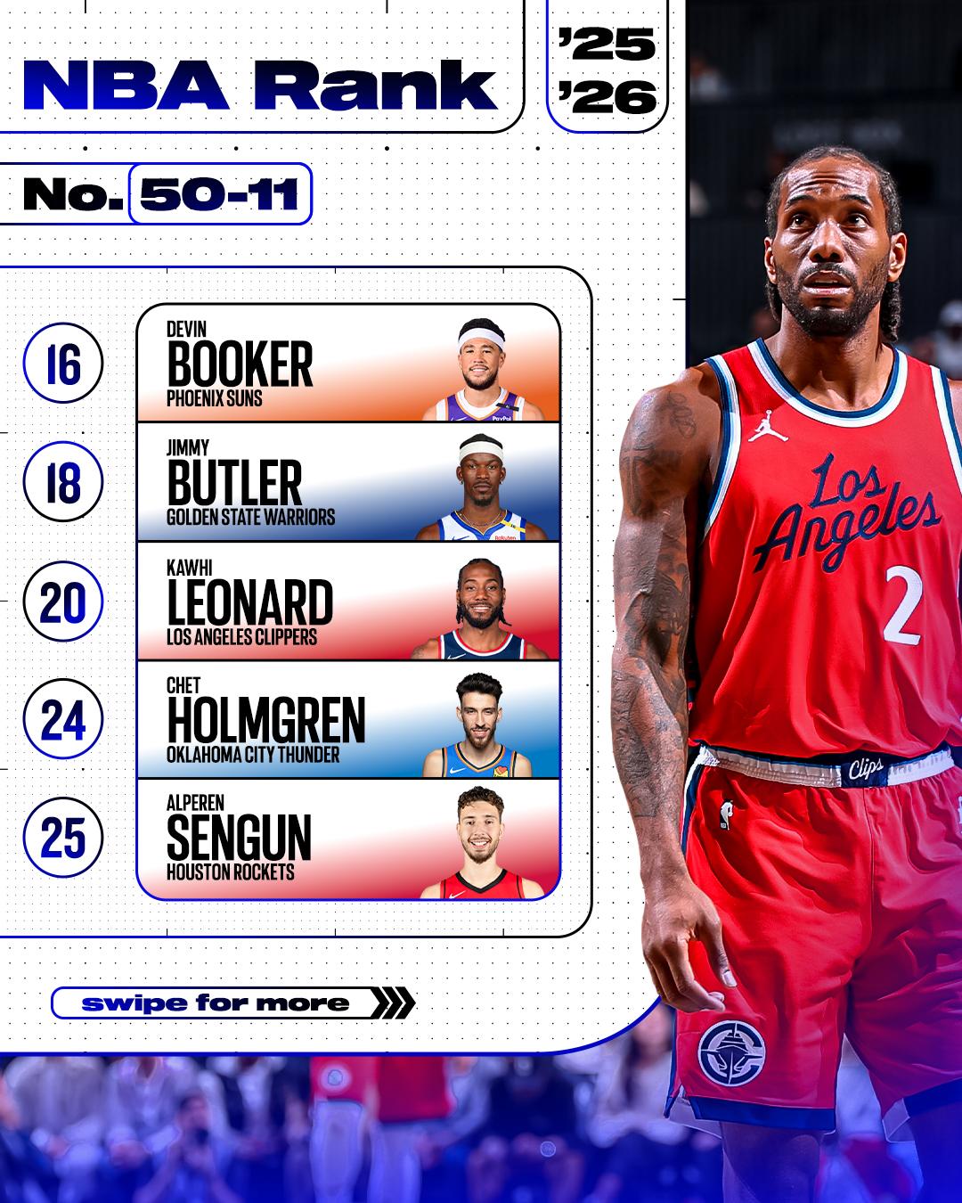 來源:ESPN虎撲09月24日訊 今日,ESPN公布了由150多名記者、編輯、制片人和分析師排出的新賽季球員排行,其中16-25名如下: