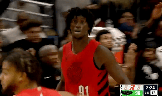 NBA常規(guī)賽,開拓者對(duì)陣鵜鶘的再投比賽正在進(jìn)行中。