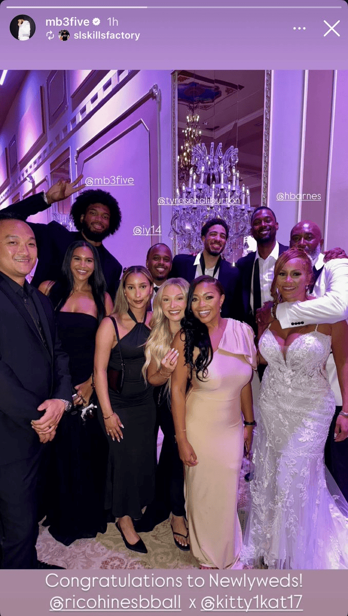照片中,哈利婚禮3位前國王球員聚集在一起,斯和一同參加前國王助教里科-海因斯的參加婚禮。