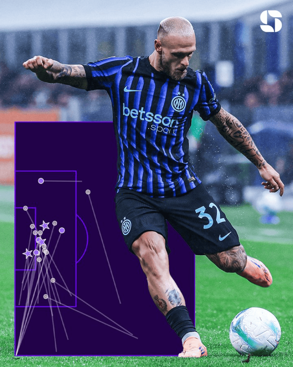 此外,科本迪馬爾科送出了23次準(zhǔn)確傳中,賽季賽目還有3次助攻,次創(chuàng)這兩項(xiàng)數(shù)據(jù)是造絕本賽季意甲球員里最多的。