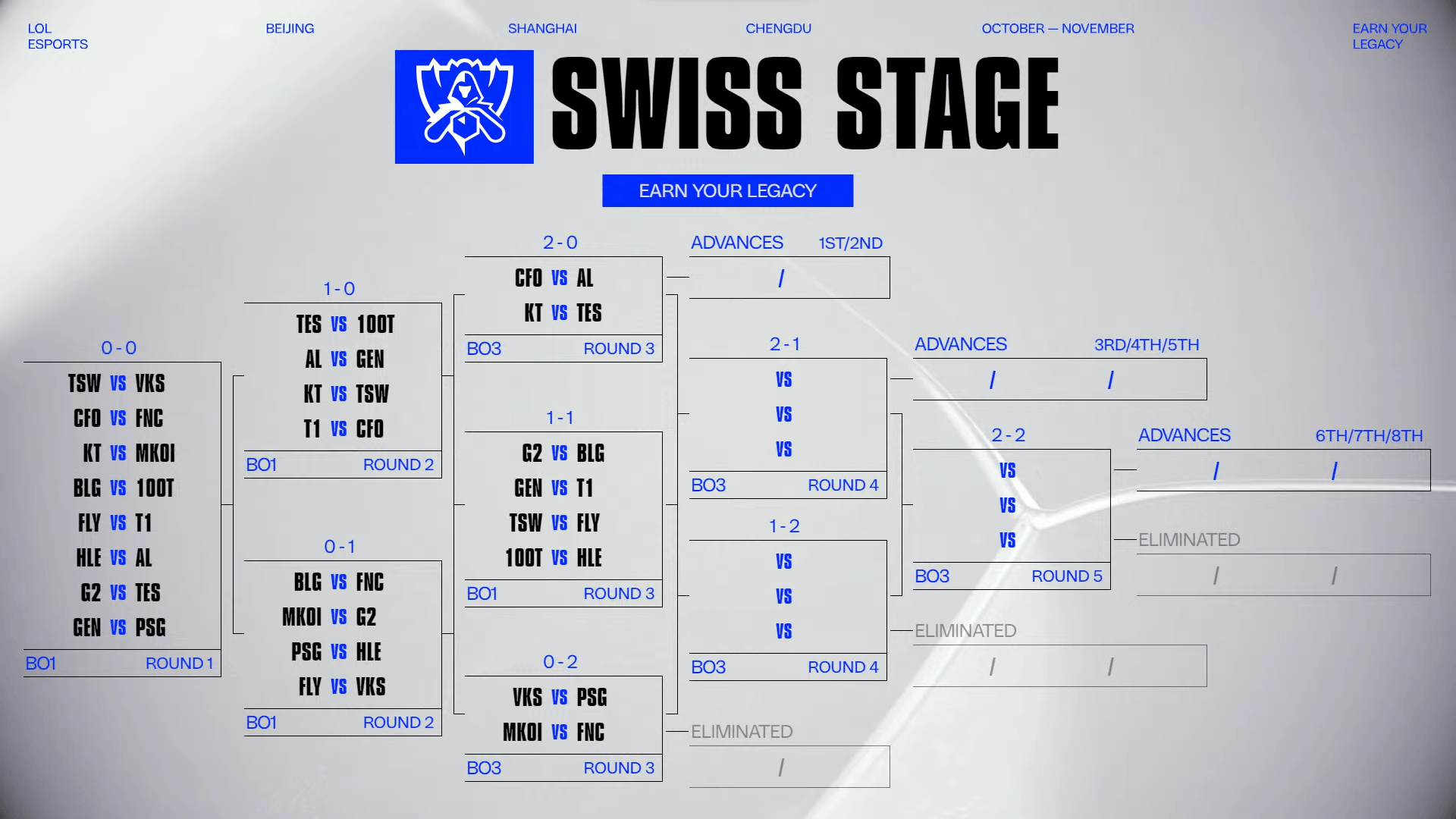 虎撲10月16日訊?2?025LOL全球總決賽瑞士輪第三輪抽簽結果如下: