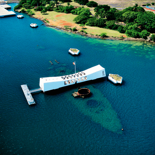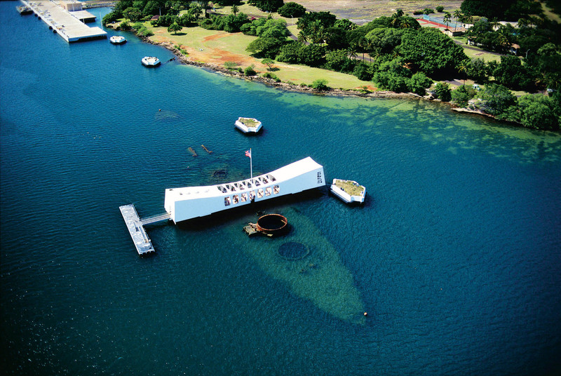 ▲ 亞利桑那號(hào)沉沒后沒再打撈,如今成為了一個(gè)紀(jì)念館