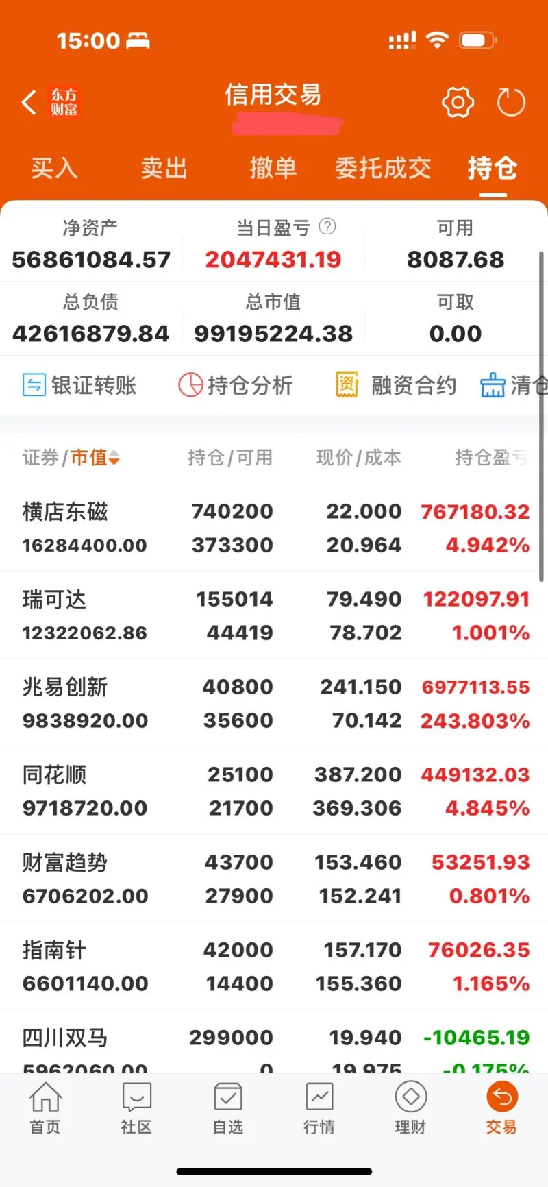 看老鐵們東磁買(mǎi)的多,我今天下午火力全開(kāi)加了3000,希望心情好點(diǎn),