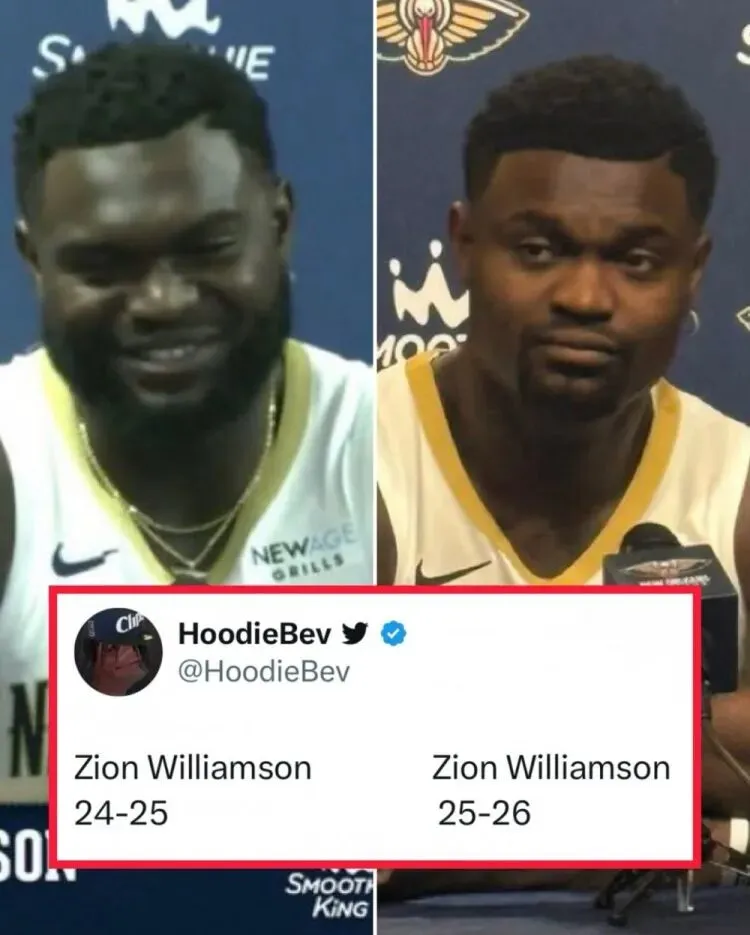 從媒體日傳出的照片看,留著小胡子的錫安比起前幾年真的瘦了不少,即便不對比最胖的2021年,相比2024年也明顯不同。
