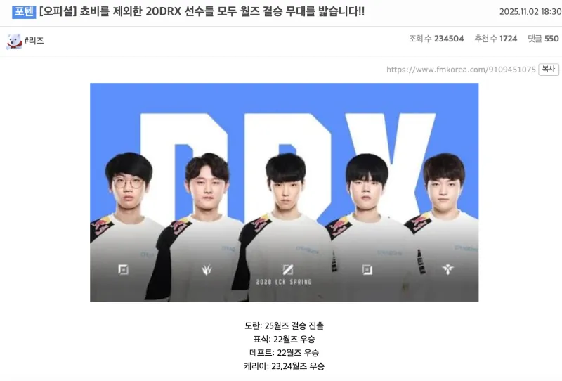 除了Chovy之外2020DRX都站上了決賽舞臺(tái)。