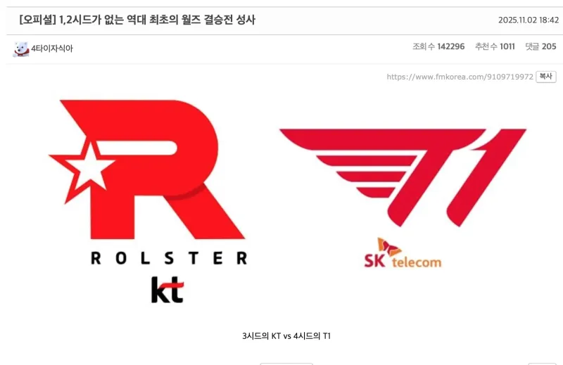 歷史上首次沒(méi)有一、二號(hào)種子的決賽,3號(hào)種子KT vs 4號(hào)種子T1。