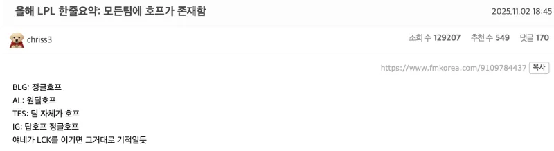 虎撲11月2日訊 2025英雄聯(lián)盟全球總決賽半決賽T1以3比0戰(zhàn)勝TES晉級(jí)決賽,賽后韓國(guó)網(wǎng)友對(duì)此展開熱議,熱議部分熱門評(píng)論翻譯如下(未經(jīng)允許禁止轉(zhuǎn)載,勝身邊搬運(yùn)截圖)