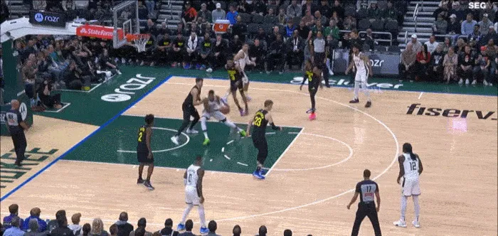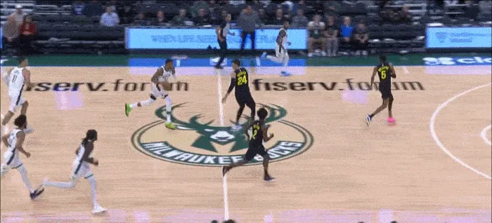 這個(gè)回合是真的體現(xiàn)他的移動(dòng)速度,在半轉(zhuǎn)換的情況下,他能壓住字母哥的沖框,并且最后完成干擾