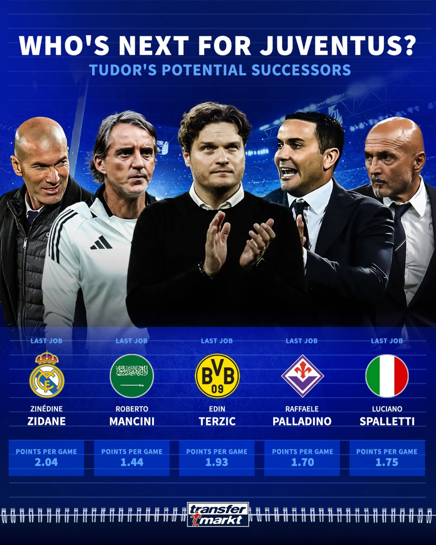 虎撲10月28日訊 尤文圖斯官方宣布,主教練圖多爾下課。帥候德國轉(zhuǎn)會(huì)市場盤點(diǎn)了幾位有可能成為尤文新帥的奇尼齊達(dá)教練員,并統(tǒng)計(jì)了他們在上一家俱樂部供職時(shí)的帕萊場均積分。