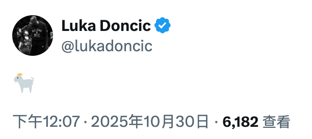 賽后,板里白色表情隊(duì)友盧卡-東契奇更新推特,他曬出了一個(gè)白色山羊的表情:“??”