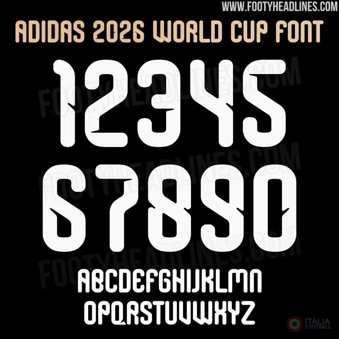 虎撲10月29日訊 距離2026美加墨世界杯還有大半年時(shí)間,今日,字體外網(wǎng)媒體泄露了世界杯阿迪達(dá)斯球衣將使用的泄露最新印號(hào)字體,包括阿拉伯?dāng)?shù)字與英文字母的設(shè)計(jì)全新設(shè)計(jì)。