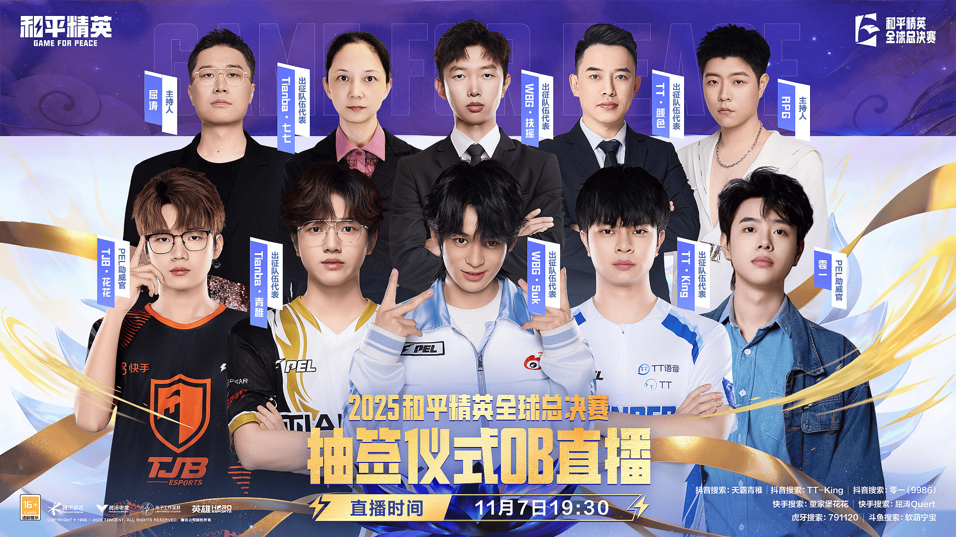 11月7日19:30,直稚2025和平精英全球總決賽抽簽儀式OB直播正式開啟,花青PEL出征隊(duì)伍選手代表、教練、助威官以及解說主持齊聚一堂,共同見證抽簽結(jié)果!