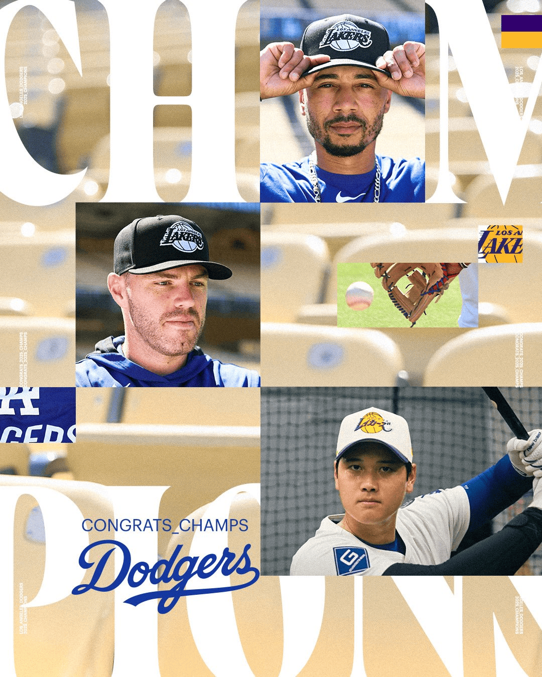 湖人官方曬海報祝賀同城球隊道奇:連續(xù)兩年奪冠,祝賀恭喜洛杉磯道奇。