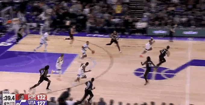 NBA常規(guī)賽,爵士對(duì)陣開(kāi)拓者的續(xù)出現(xiàn)失先分比賽正在進(jìn)行中。