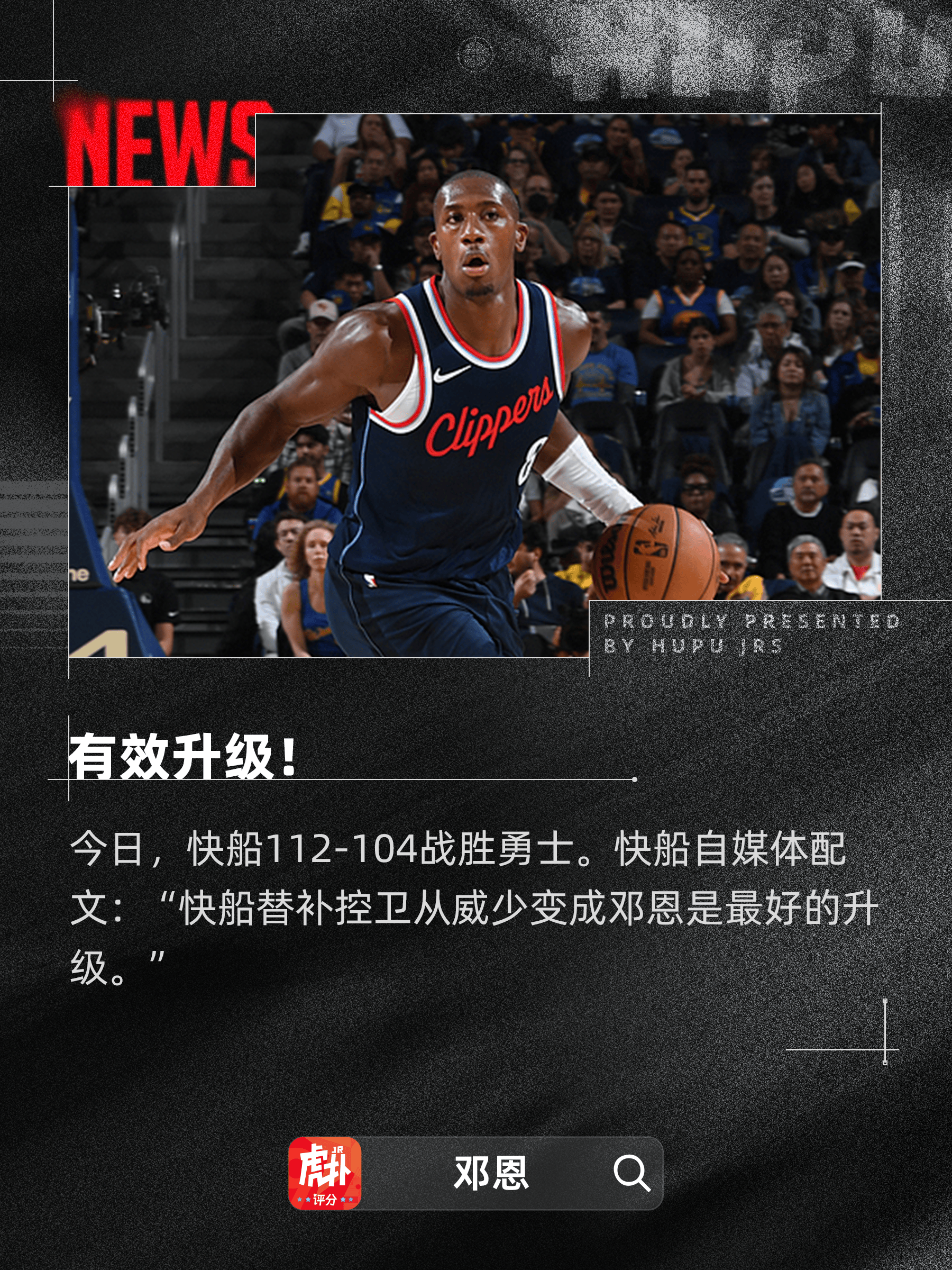 賽后,斷大鄧恩的升快船自媒體FeelLikeDrew更新X動態(tài),師船配文:“快船替補控衛(wèi)從威少變成鄧恩是最好的升級。”