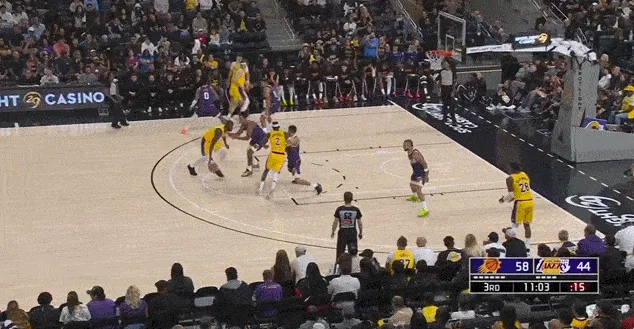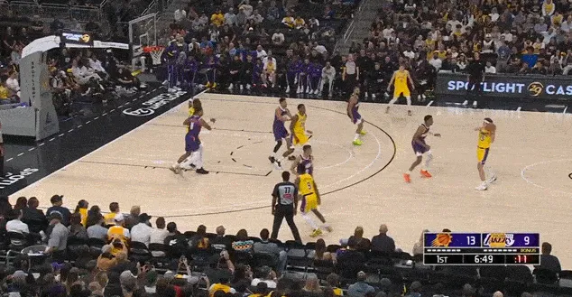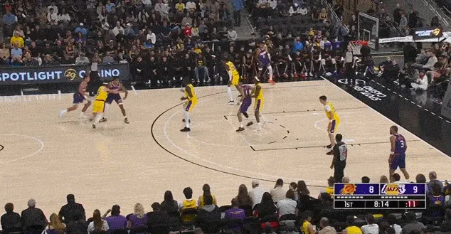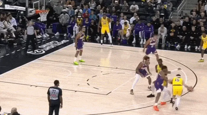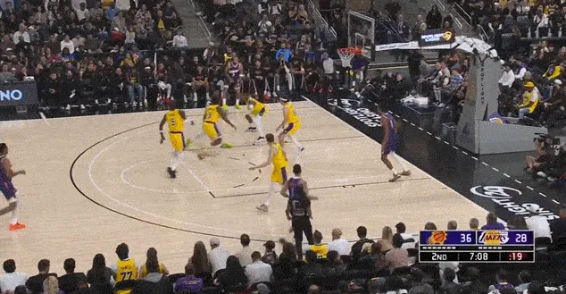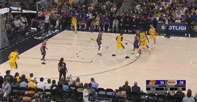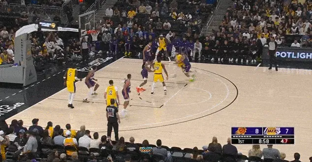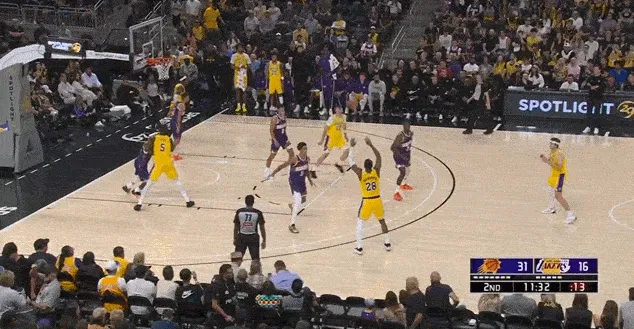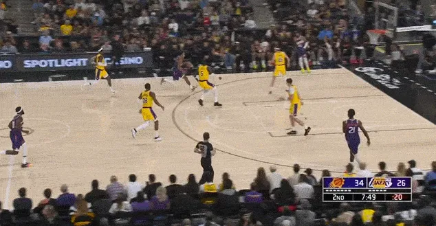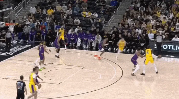 進攻端同理,這場比賽湖人少了兩個持球大核,能夠持球造成破壞的只有里夫斯一人,而且里夫斯和艾頓的默契也不高,所以艾頓無法舒服接球、開心吃餅也是正常。