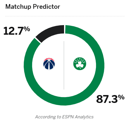 [流言板]ESPN預(yù)測(cè)明日凱爾特人vs奇才比賽:凱爾特人勝率高達(dá)87.3%