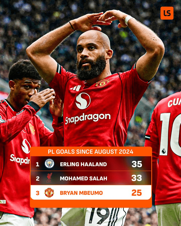 自上賽季開始至今,姆伯莫已打入25粒聯(lián)賽進球,僅次于哈蘭德(35球)和薩拉赫(33球),位列所有英超球員中的第三名。