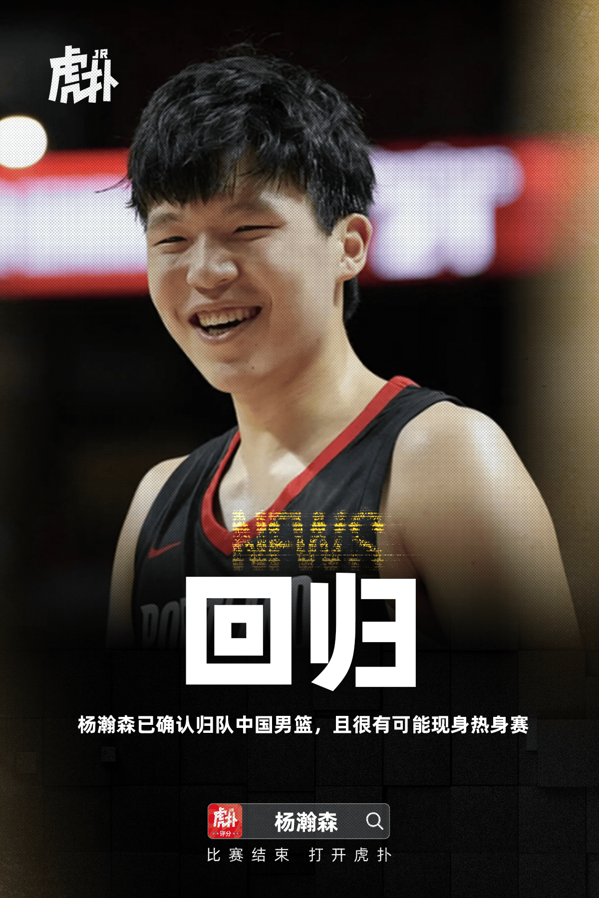 虎撲07月24日訊 央視頻官方更新社媒發(fā)文表示:中國(guó)球員楊瀚森已經(jīng)確認(rèn)歸隊(duì)中國(guó)男籃,并且將很有可能現(xiàn)身熱身賽。楊瀚