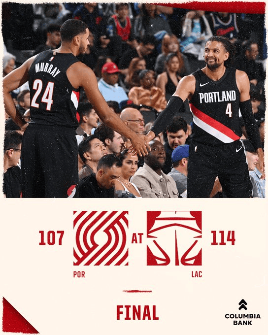 虎撲10月27日訊 今日NBA常規(guī)賽,開拓者107-114不敵快船。全場