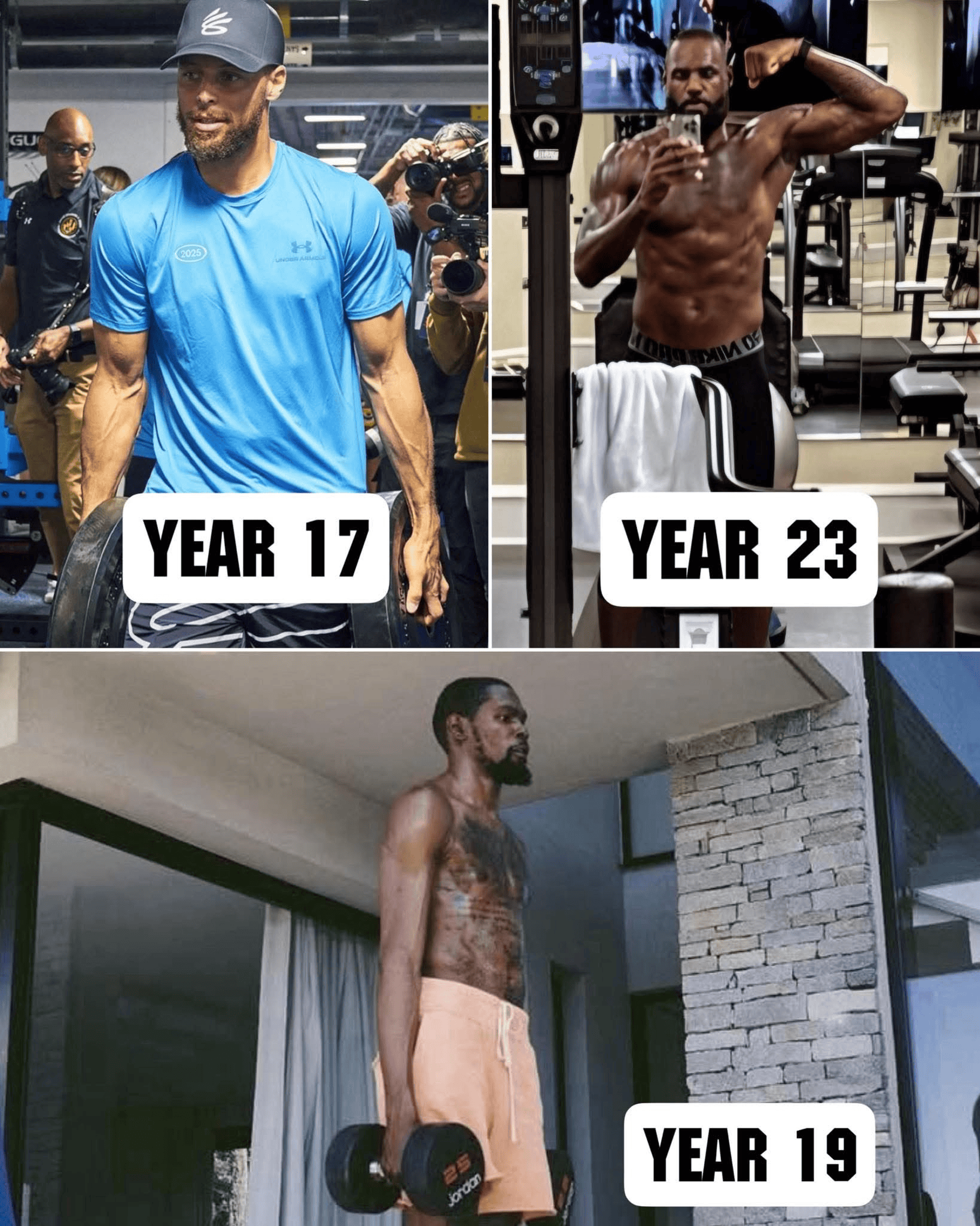虎撲09月20日訊 美媒NBA Memes曬斯蒂芬-庫(kù)里、勒布朗-詹姆斯、媒曬凱文-杜蘭特訓(xùn)練照。詹杜