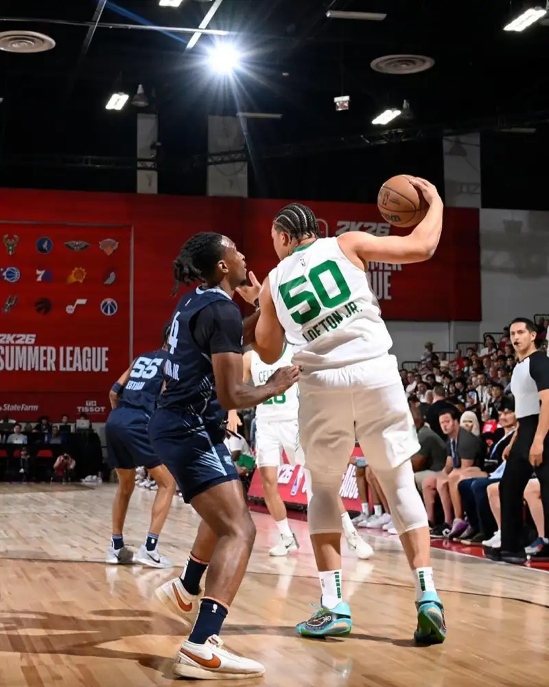 在今日結(jié)束的一場夏季聯(lián)賽中,洛夫頓出戰(zhàn)18分鐘,全場6中3,得到8分3籃板2助攻1失誤,幫助凱爾特人以94-81的比分戰(zhàn)勝尼克斯。