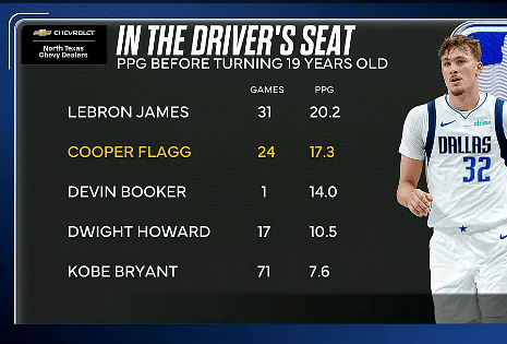 比賽的前場(chǎng)前霍第一節(jié),轉(zhuǎn)播畫(huà)面給出一組數(shù)據(jù),分榜內(nèi)容為19歲前的詹姆球員出戰(zhàn)場(chǎng)次和得分榜單,詳情如下: