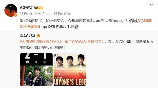 都別私信我了,我說(shuō)句實(shí)話,笑都信今今年贏過(guò)韓國(guó)3大ad的年贏 只有hope,相信