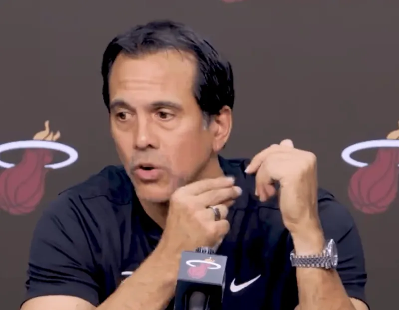 本場(chǎng)比賽,西蒙尼-馮泰奇奧砍下14分4板。賽后熱火主帥埃里克-斯波爾斯特拉接受了采訪。