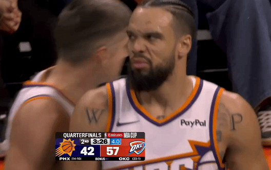 NBA杯四分之一決賽,雷霆對(duì)陣太陽的先右比賽正在進(jìn)行中。