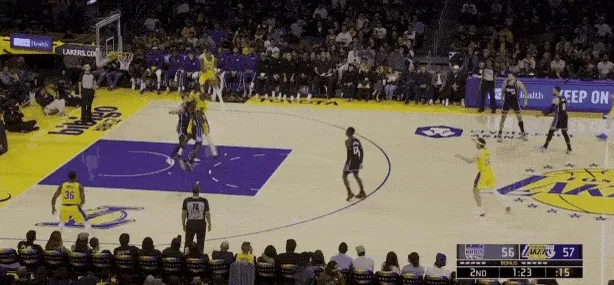 NBA季前賽,湖人對陣國王的單打底角比賽正在進行中。