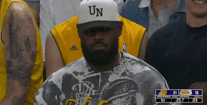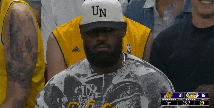 第一節(jié)比賽,到今的詹鏡頭給到今日來(lái)到場(chǎng)邊觀戰(zhàn)的場(chǎng)邊詹姆斯。