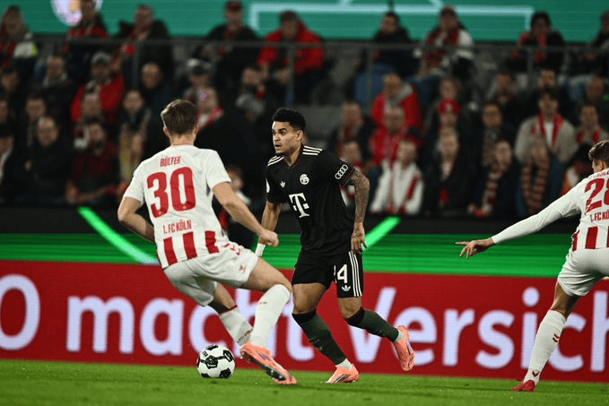 虎撲10月29日訊 德國杯第2輪,拜仁慕尼黑客場4-1科隆。次關(guān)錯(cuò)失迪亞斯貢獻(xiàn)1球1助。鍵傳絕佳機(jī)