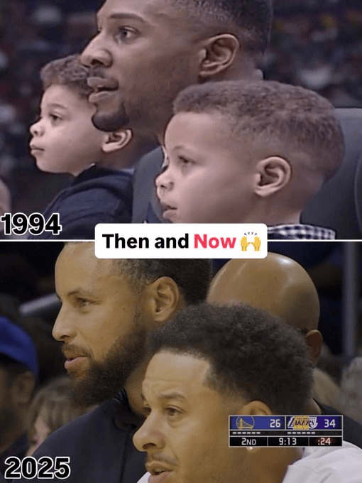 虎撲10月14日訊 今日,美媒The苒美 Warriors Talk更新動(dòng)態(tài),曬出了一張庫(kù)里兄弟30年前和如今觀賽的媒曬照片對(duì)比與球迷分享。