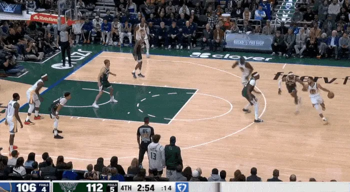 庫(kù)里外線背后運(yùn)球出界失誤,勇士落后雄鹿9分